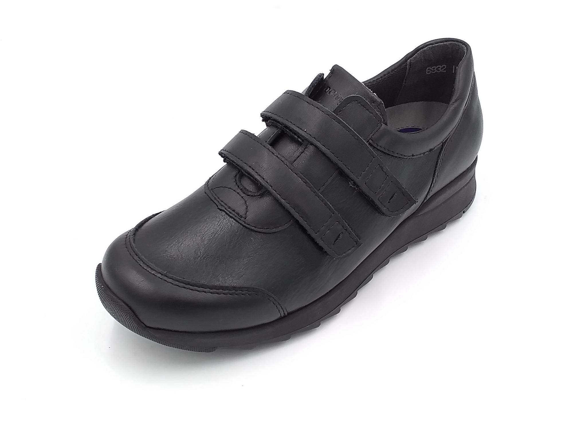 Laadukkaat ja tyylikkäät mustat Pomar -kävelykengät. Nahkaa. Tilava lesti.