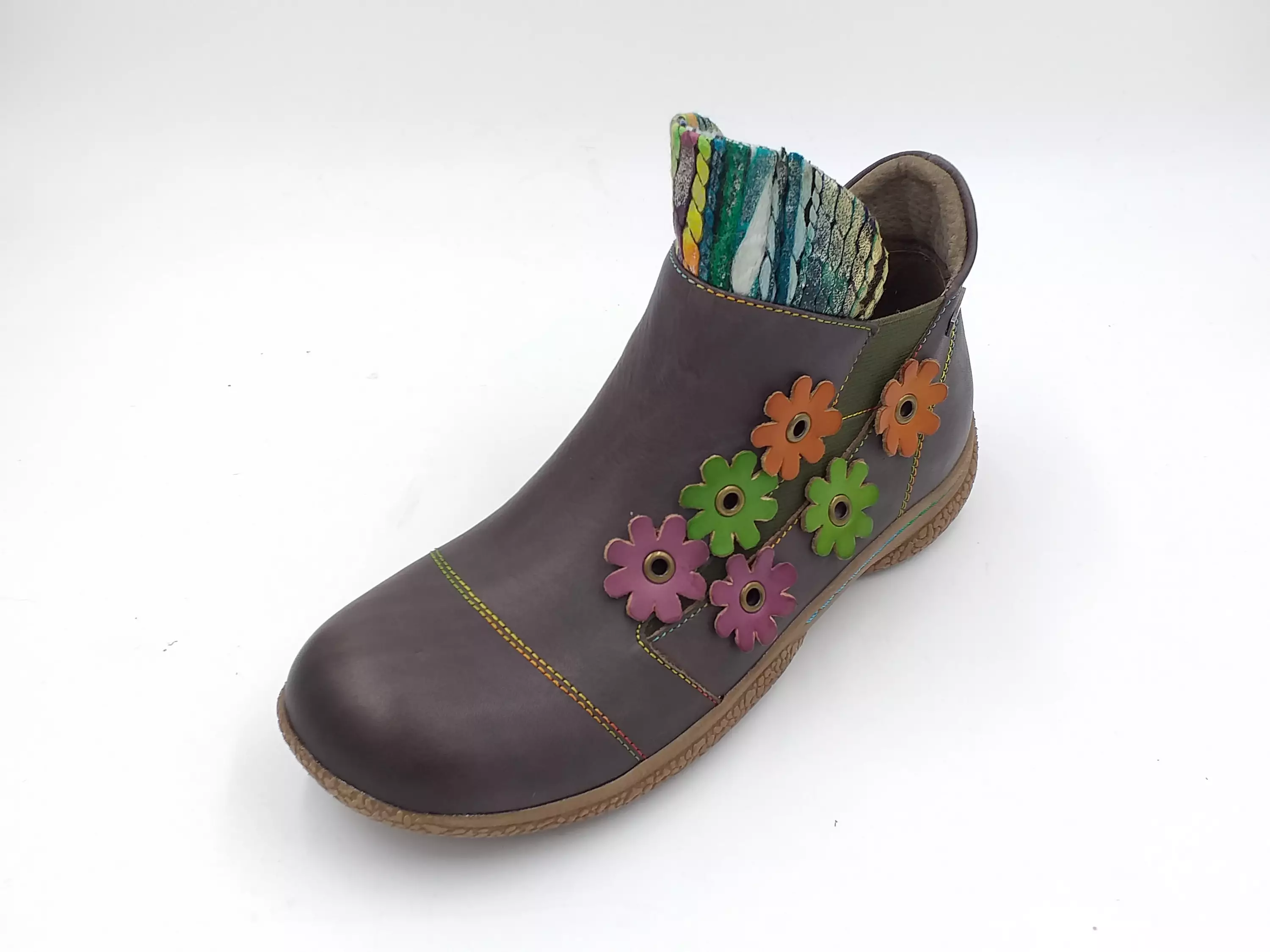 Yksityiskohdat: vetoketju sisäsyrjällä, kukkakoristelu ulkosyrjällä