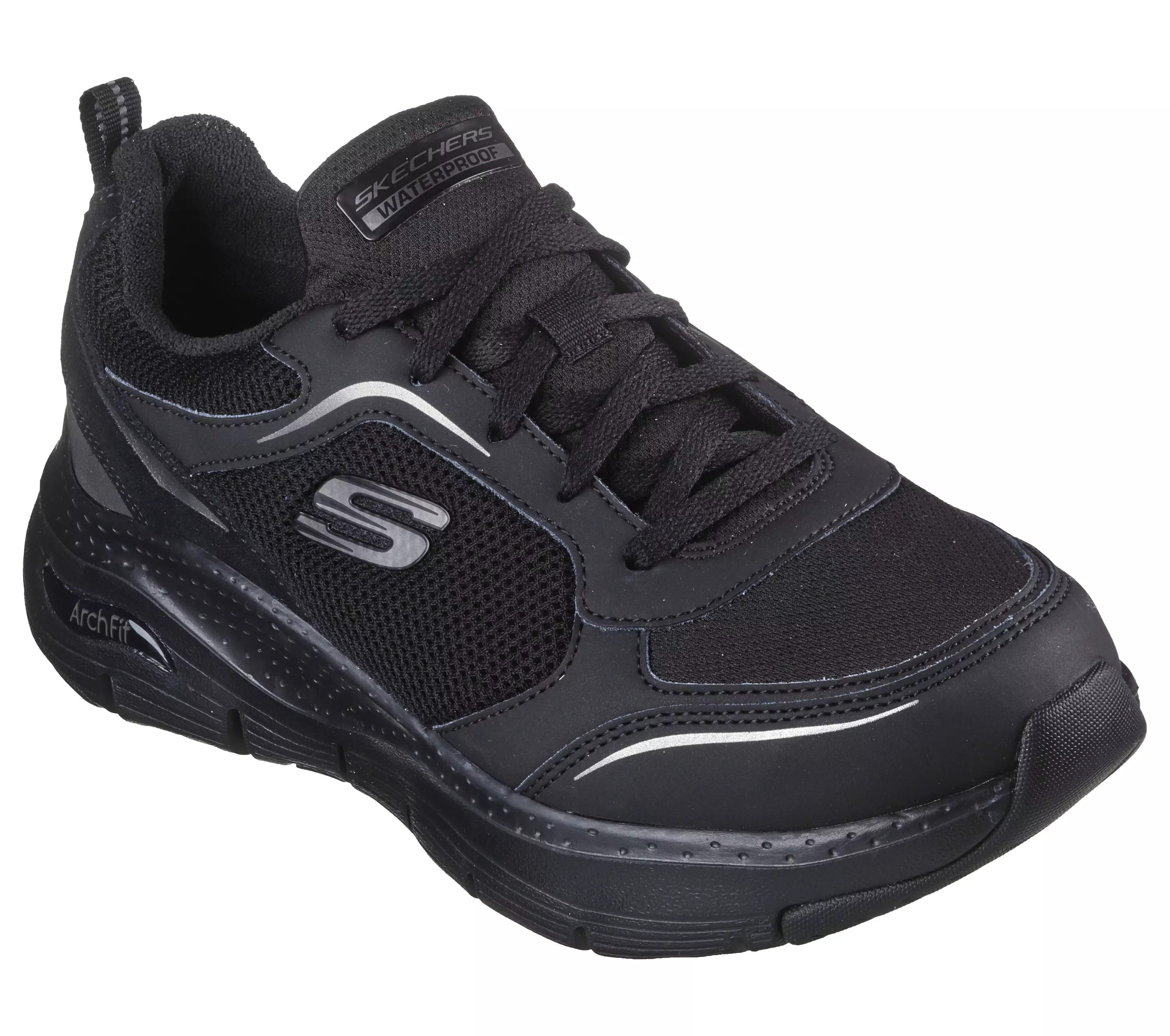 Vedenpitävät ArcFit Skechers -tennarit, jotka antavat tukea jalan holvikaarelle.